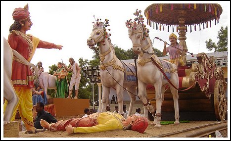 கன்றை இழந்த பசு அடிக்கும் மணியோசை கேட்டு, அக்கன்றை கொன்றது தாம் நெடும்காலம் தவமிருந்து பெற்ற தன் மகனேயென அறிந்தும், அதற்கு எத்தனையோ மாற்று பரிகாரங்களை ஏனையோர் எடுத்துரைத்தும் !