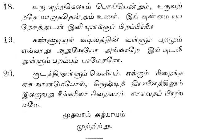 20.Just as one and the same all-pervading space exists within and without a jar, so the eternal, everlasting God exists in the totality of things.