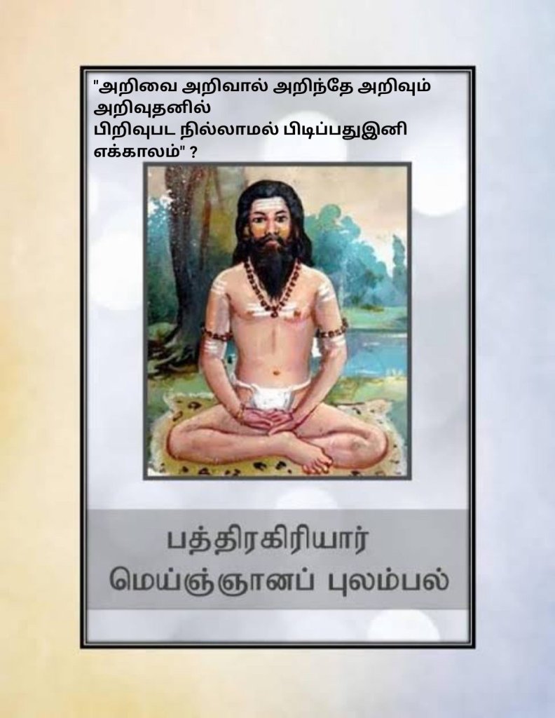“பிரிவுற்று அறியாப் பெரும் பொருளாய் என் அறிவுக் கறிவாம் அருட்பெருஞ் ஜோதி”