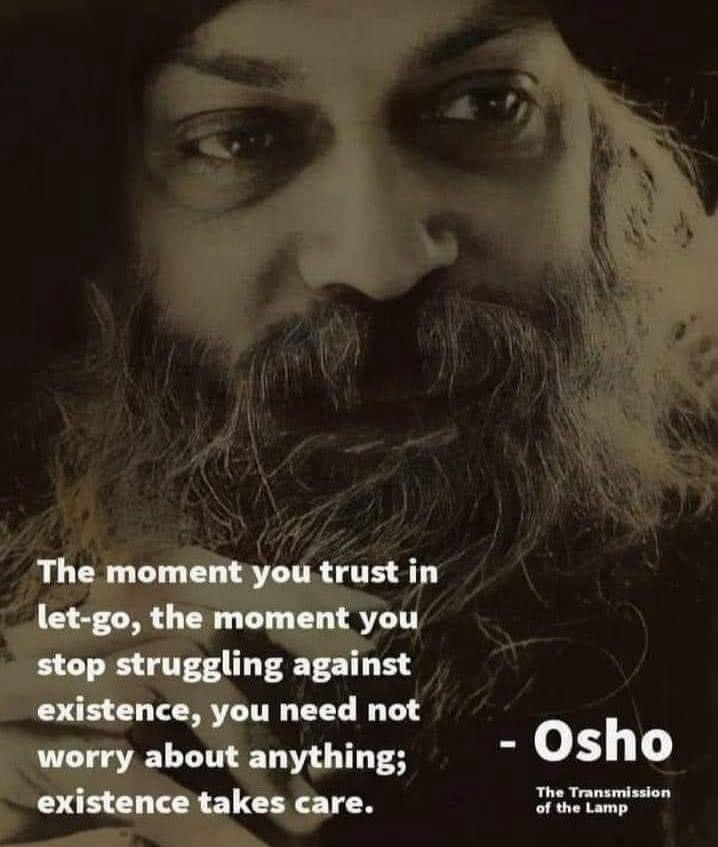 நீங்கள் விடுபடுவதை நம்பும் தருணம், இருப்புக்கு எதிராகப் போராடுவதை நிறுத்தும் தருணம், நீங்கள் எதைப் பற்றியும் கவலைப்பட வேண்டியதில்லை; இருப்பு கவனித்துக்கொள்கிறது.