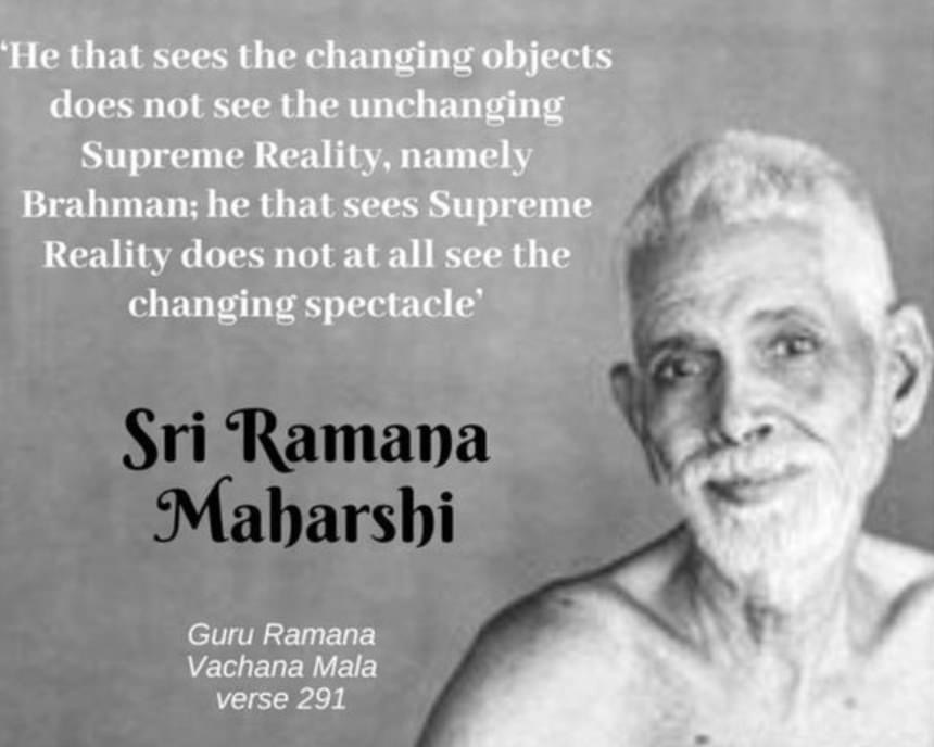 ‘He that sees the changing objects does not see the unchanging Supreme Reality, namely Brahman; he that sees Supreme Reality does not at all see the changing spectacle*- Sri Ramana Maharshi