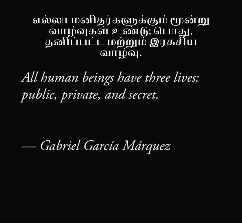 எல்லா மனிதர்களுக்கும் மூன்று வாழ்வுகள் உண்டு; பொது, தனிப்பட்ட மற்றும் இரகசிய வாழ்வு.