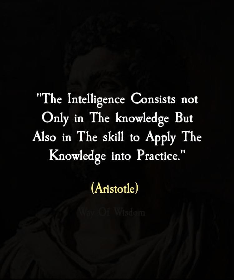 “The Intelligence Consists not Only in The Knowledge But Also in The Skill to Apply The Knowledge into Practice.” (Aristotle)