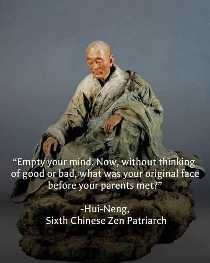 “உன் மனதை வெறுமையாக்கு. நல்லது கெட்டது என்று நினைக்காமல், இப்போது, அதாவது உன் பெற்றோர் சந்திக்கும் முன் உன் அசல் முகம் என்ன?”
