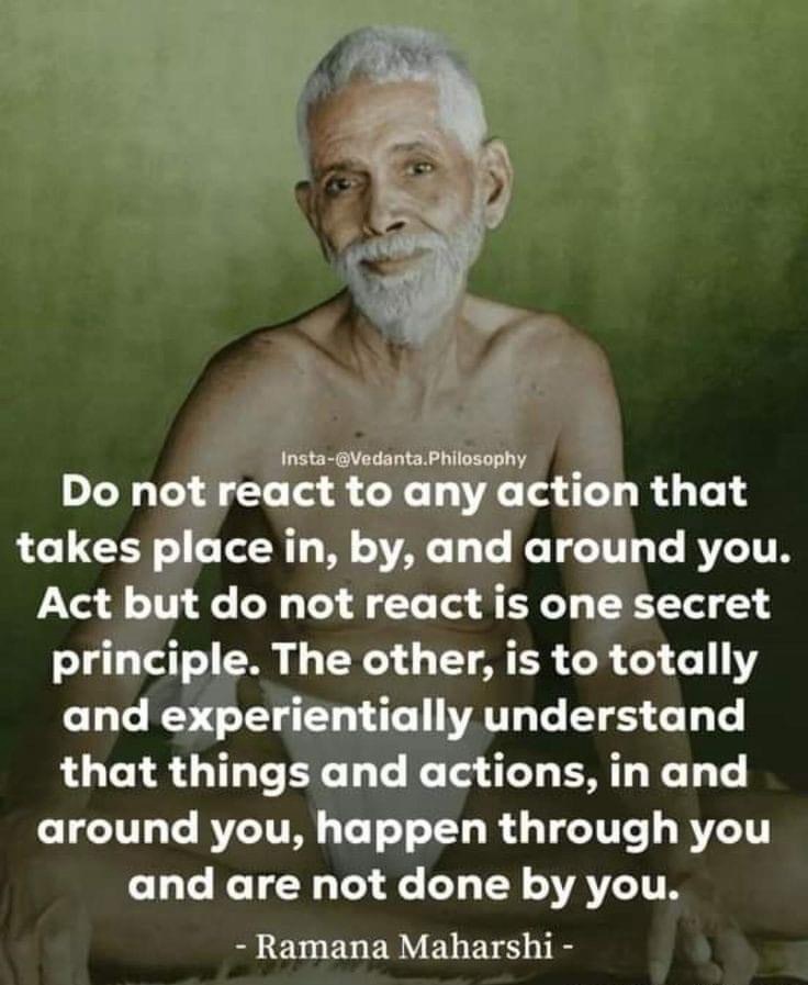 2.மற்றொன்று, உங்களைச் சுற்றியுள்ள விஷயங்களும் செயல்களும் உங்கள் மூலமாகவே நிகழ்கின்றன, உங்களால் செய்யப்படவில்லை என்பதை முழுமையாகவும் அனுபவபூர்வமாகவும் புரிந்துகொள்வது.- ரமண மகரிஷி –