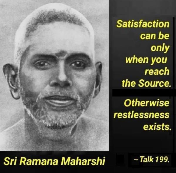 ரமண மகரிஷி கூறுகிறார்: ஆதாரத்தை அடையும் போதுதான் உண்மையான திருப்தி ஏற்படும். இல்லையெனில் அமைதியின்மை இருந்து கொண்டேயிருக்கும்.