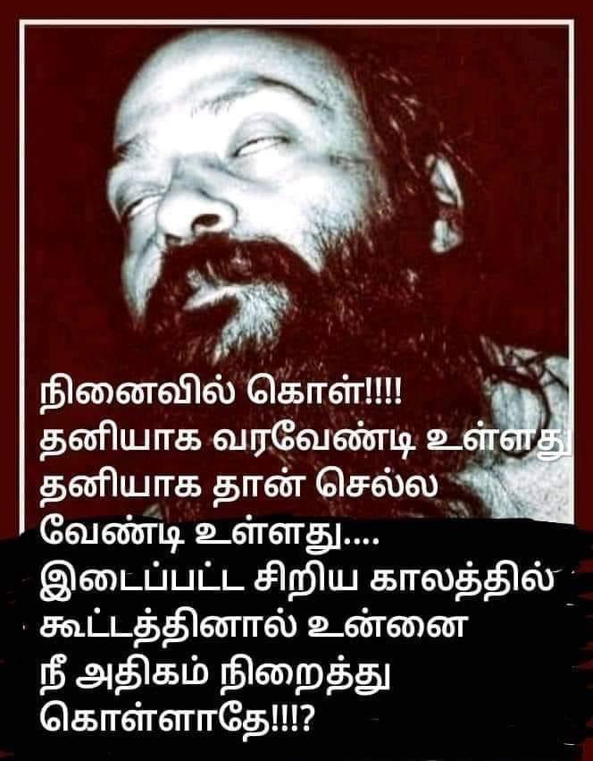 தனியாகத் தான் செல்ல வேண்டியுள்ளது: ஆம் மரணம் என்னும் நிகழ்வில், அதுவரை நின்ற அவ்வுருவினை விட்டு நீங்கி, மீண்டும் ஓர் அணுவாய் வேறொரு கர்பப்பையை நாடி, தனியாகத் தான் செல்ல வேண்டியுள்ளது!!