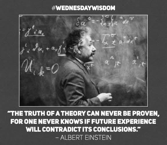 “The truth of a theory can never be proven, for one never knows if future experience will contradict its conclusions.” – Albert Einstein.