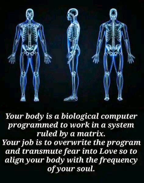 உங்கள் உடல் ஒரு மேட்ரிக்ஸால் ஆளப்படும் அமைப்பில் வேலை செய்ய திட்டமிடப்பட்ட ஒரு உயிரியல் கணினி. MATRIX என்பதன் பொருள் வேறு ஏதாவது ஒன்றிற்குள் உருவாகும், உருவாகும் அல்லது வடிவம் பெறும் ஒன்றைக் குறிக்கிறது. ஆன்மா, வன்பொருளைப் போன்றது, மென்பொருளைப் போலவே, உடலும் தோற்றுவிக்கப்பட்டு, உருவாகி, வடிவம் பெறுவதற்கான ஆதாரம் என்பதை இது குறிக்கிறது. உங்கள் பணி, உங்கள் ஆன்மா ஏற்கனவே எழுதிய திட்டத்தைத் தழுவி, பயத்தை அன்பாக மாற்றுவது மற்றும் உங்கள் உடலின் அதிர்வுகளை உங்கள் ஆன்மாவின் தொடர்புடைய அதிர்வெண் மற்றும் வார்த்தையுடன் சீரமைப்பது.