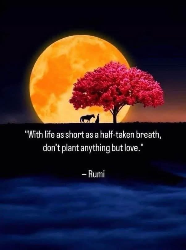 “With life as short as a half-taken breath, don’t plant anything but love.” – Rumi