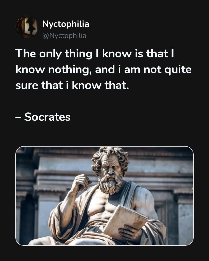 The only thing I know is that I know nothing, and i am not quite sure that i know that.- Socrates