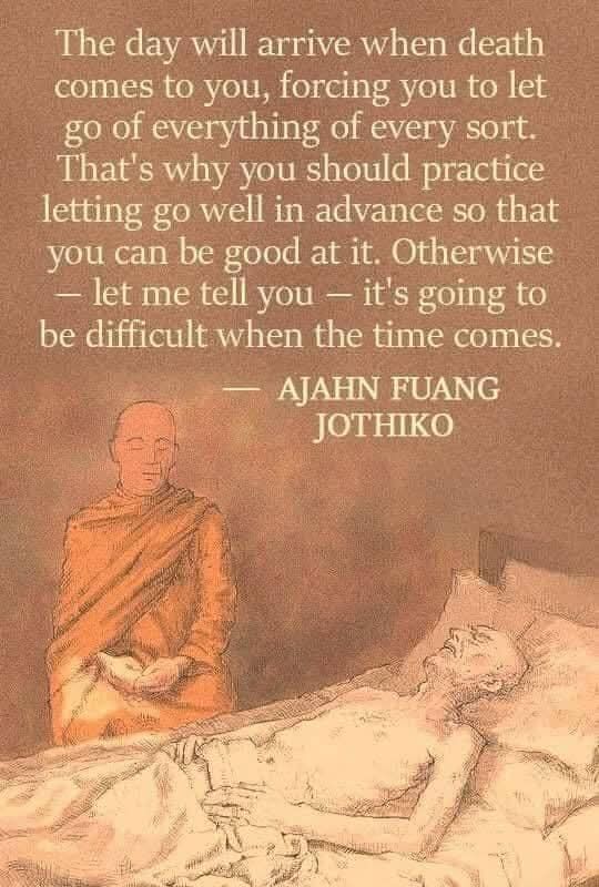 தாய்லாந்தின் பௌத்த துறவியான அஜான் ஃபுவாங் ஜோதிகோ இவ்வாறு கூறுகிறார்: மரணம் உங்களைத் தேடி வரும் நாள் வரும், எல்லா வகையான அனைத்தையும் விட்டுவிட உங்களை அது கட்டாயப்படுத்தும். அதனால்தான் நீங்கள் நன்றாக இருக்க வேண்டும் என்பதற்காக முன்கூட்டியே விடாமல் மேலே குறிப்பிட்ட ‘ஆம்’ மற்றும் ‘இல்லை’ என்ற ஒலியால் இடைவிடாது பயிற்சி செய்ய வேண்டும். இல்லையெனில், நேரம் வரும்போது நீங்கள் உலகம் ‘உண்டு’ என்னும் ஒலியாக இருந்தால் அது மிக கடினமாக இருக்கும் என்று நான் உங்களுக்கு சொல்கிறேன்.