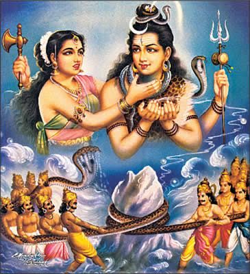 நாபிக் கமலத்தில் இருக்கும் திருப்பாற்கடலுக்கு நிகரான மிகச் சிறிய -நீர் துளி போன்ற உயிர் வித்துவில் இருந்து அமிர்தம் கடைய, மேரு மலைக்கு நிகரான மந்திர ஒலியை மத்தாக்கி, வாசுகி என்னும் நாகத்திற்கு நிகரான உள்மூச்சு மற்றும் வெளிமூச்சு என்னும் இவ்விரண்டையும், கடையும் கயிராக்கி கடையும்போது, முதலில் மூச்சின் சினத்தால் வெளிப்படும் விஷத்திற்கு ஒப்பான தன்மைகள், தேகம் முழுவதும் பரவி அழிவை ஏற்படுத்தாமல் இருக்க…