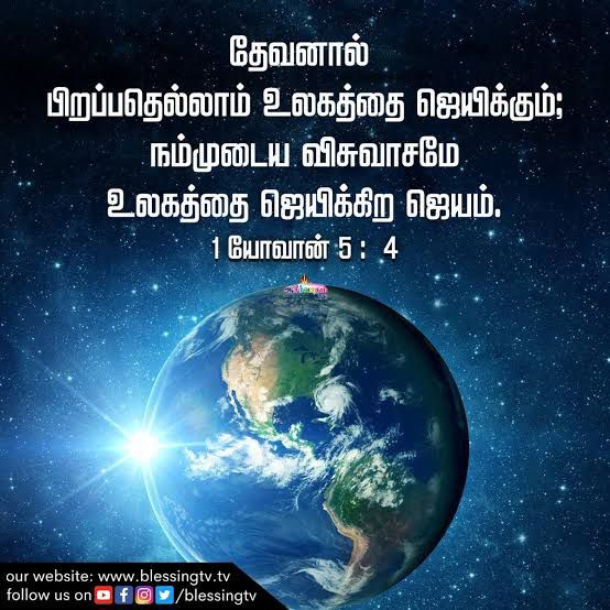 “தேவனால் பிறப்பதெல்லாம் உலகத்தை ஜெயிக்கும். நம்முடைய விசுவாசமே உலகத்தை ஜெயிக்கிற ஜெயம்”. 1யோவான் 5:4