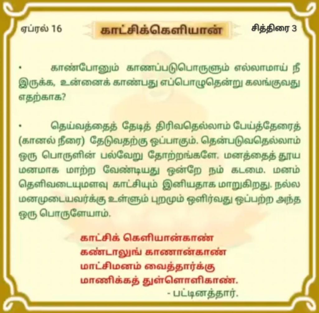 உண்மையான நிலை என்பது ‘தூய இருப்பு’ மட்டுமே ஆகும், அதற்கு ஆரம்பம், முடிவு அல்லது நடு இல்லை, எனவே அது பிறப்பு மற்றும் இறப்பு சுழற்சியில் வராது. நாம் காட்சியாக காணும் பஞ்சபூத கலவையால் ஆன நம்முடைய தேகம், தூய இருப்பின் பிரதிபலிப்பு சக்தியே!
