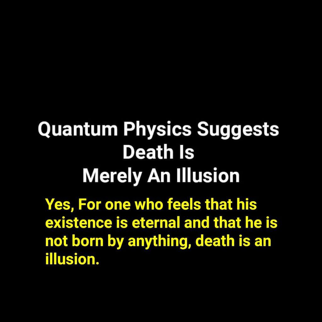குவாண்டம் இயற்பியல் மரணம் என்பது வெறும் மாயை என்று கூறுகிறது. ஆம், ஆன்மாவின் இருப்பு முடிவற்றது என்றும், அவர்கள் ஆன்மாவைத் தவிர வேறு எதனாலும் பிறக்கவில்லை என்றும் நம்புபவர்களுக்கு மரணம் ஒரு மாயை.