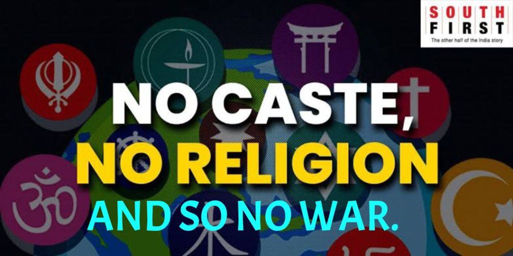 “சாதி இல்லை, மதம் இல்லை, அதனால் போர் இல்லை.”