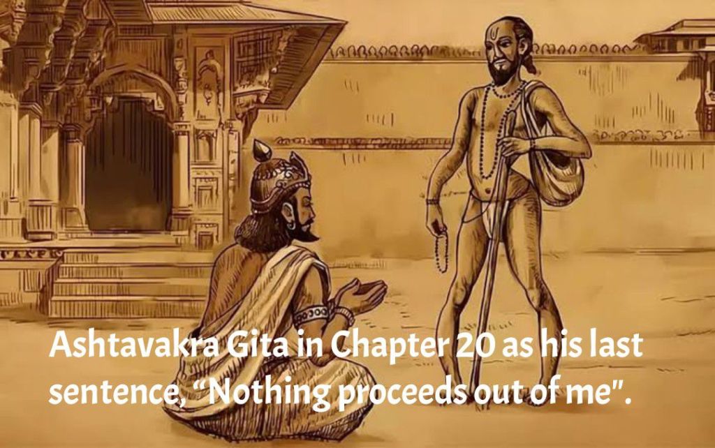 ரிஷி அஷ்டவக்ரர் தான் சந்தித்த அனுபவத்தை பின்வருமாறு விவரிக்கிறார்: ‘யாரும் இல்லை’ என்ற கருத்து மறைந்துவிட்டது, இப்போது ‘எனக்கு முன்னால் எதுவும் இல்லை’ என்று நான் உணர்கிறேன்.