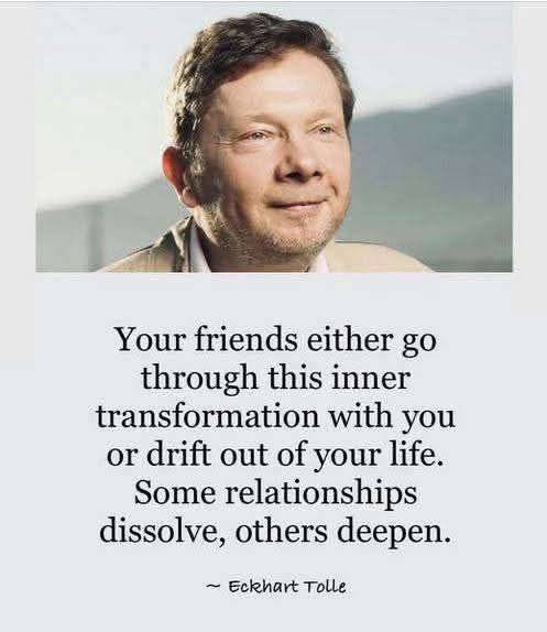 Your friends either go through this inner transformation with you or drift out of your life. Many relationships dissolve; a few only deepen. :Eckhart Tolle