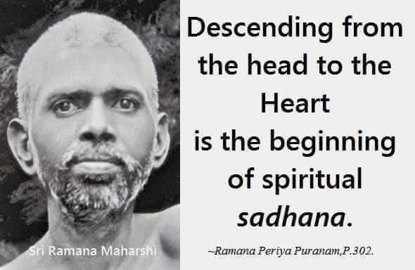 “Descending from the head to the heart is the beginning of spiritual sadhana.” – Sri Ramana Maharshi.