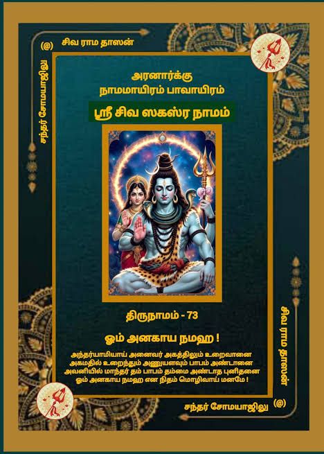 ஓம் அனகயா நமஹ ! என்ற 73 வது சிவ சகஸ்ர நாதம், வெள்ளை கடுகை ஒத்த உயிர் வித்தாக நாபிக் கமலத்தில் குடி கொண்டிருக்கும் விந்தணுவோடு, நாத விந்துவாக கலந்து, அது தூபமாக உடல் முழுவதும் வியாபித்து, அதன் காரம் மனதில் எழும் தீய சக்திகளையும், எதிர்மறை ஆற்றலையும் விரட்டி…