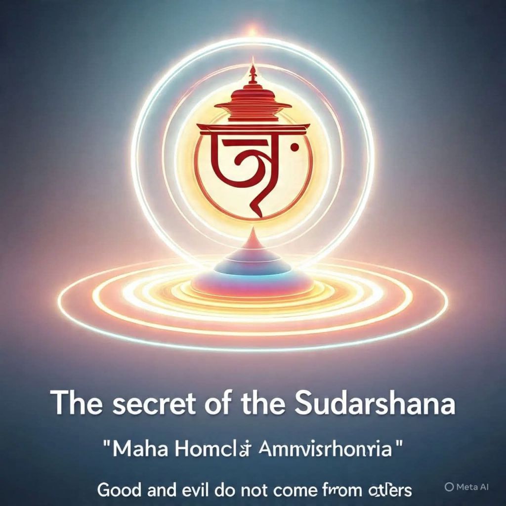 Therefore, during the performance of this Sudarshana Maha Homam, if no electronic devices such as loudspeakers, cell phones, video lights, fans, etc., are used, and if no other sounds interfere with the sacred chanting of this powerful mantra, and if one properly absorbs the sound of this Sudarshana Maha Mantra alone into their mind, it will circulate internally through the vital energies, reach the hands of Lord Mahavishnu, who resides as the source of thoughts of the devotee, and grant eternal peace to the person who is concentrating.