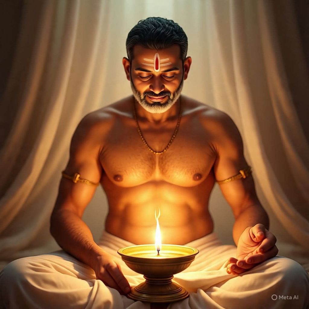 காயம் என்னும் ஐந்து கோசங்களால் ஆன இவ்வுடல், மனம், புத்தி, பிராணங்கள், போன்றவைகள் ஓளிர்விக்கப்படுகின்றது என்ற மெய்யுணர்வில், இவ்வுடம்பானது அதனுள் குடிகொண்டிருக்கும் உயிர் என்னும் தூய விளக்கால், நெருப்புக் கனலாக ஆகிவிடும் போது,